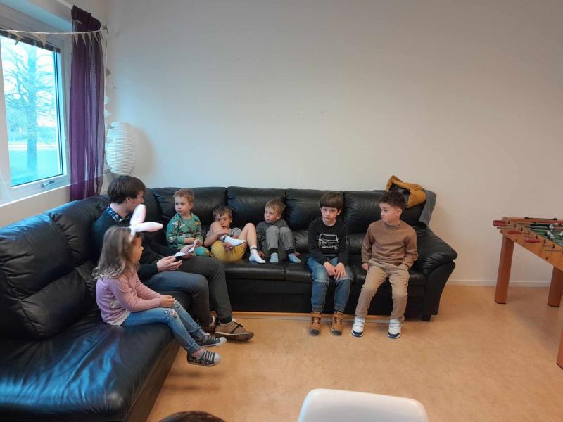 A kézműveskedést követően felolvastuk a levelet amit maga a húsvéti nyúl írt. Ebben találós kérdések voltak, melyek a klubhelység különböző termeibe vezették a kincsvadászokat. Végül az utolsó rejtvény a közeli parkba vezette a társaságot ahol elkezdődhetett a húsvéti tojásvadászat.
