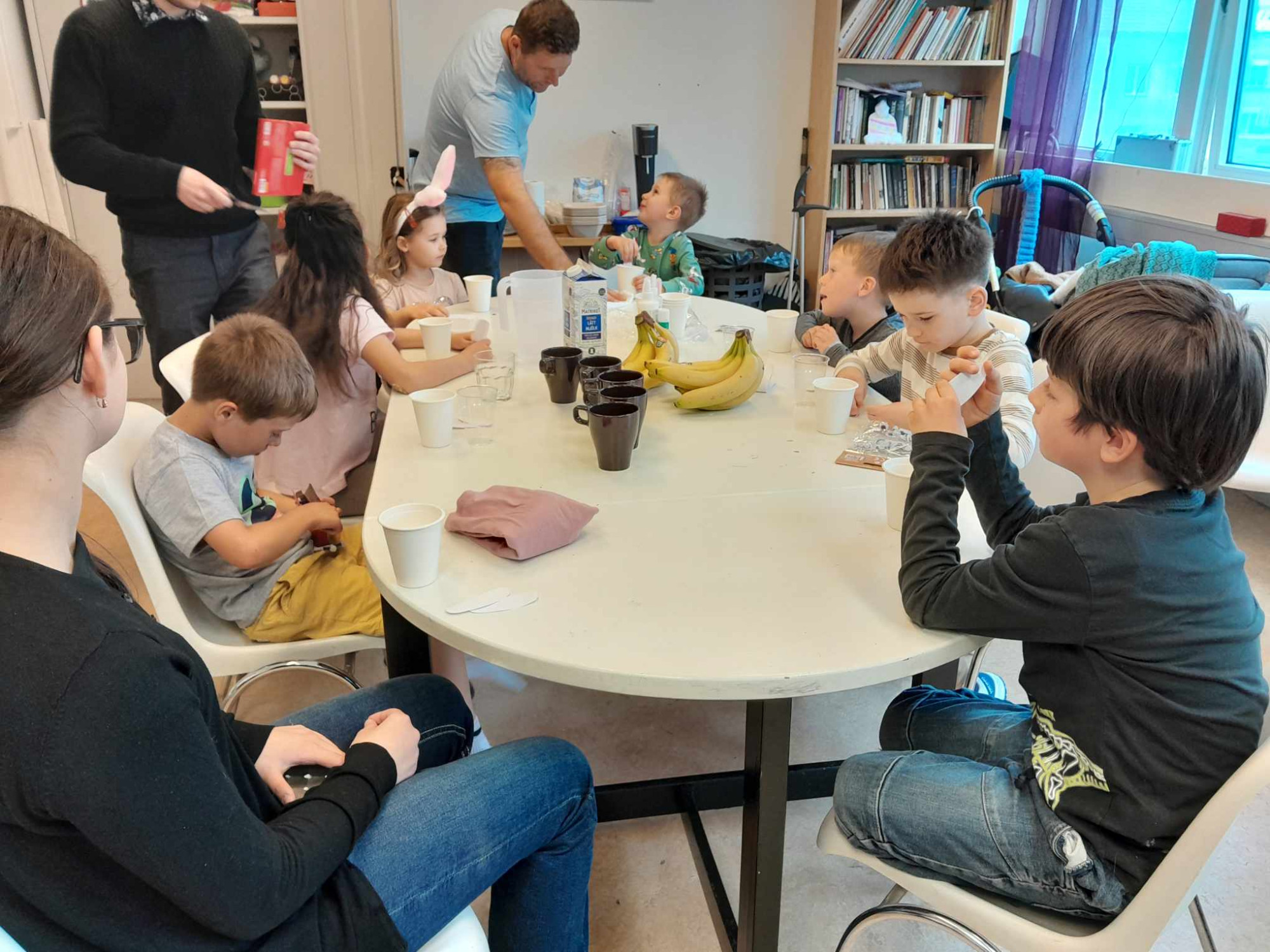A halmstadi magyar gyerekek idén egy izgalmas és mozgalmas húsvéti foglalkozáson vehettek részt: A program elején a fiúk locsolóverset tanultak, a lányok pedig húsvéti mondókákat és énekeket. Ezek után mindenki készített magának egy húsvéti tojásgyűjtő poharat, amibe később a csokitojásokat gyűjthették.