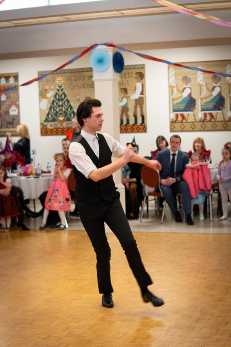 Az estet Rideg Tímea és Balogh Dávid néptánc bemutatója nyitotta meg. Egy nagyon ízletes vacsora elfogyasztása után jött el az ideje a jelmezversenynek, ahol különböző korosztályi és formációs (pl.: családi, páros) kategóriákban indulhattak a versenyzők.