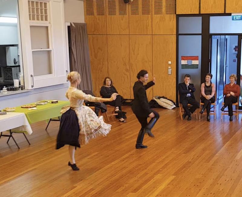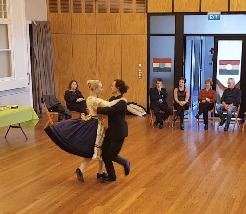 Neiner András christchurch-i KCSP-s két vers szavalásával nyitotta meg a műsort, majd Biró Mártonnal Kalocsai táncot és Szatmári táncot mutattunk be a magyar közösség számára. Wellingtonban is moldvai táncházzal és vacsorával zártuk a napot.