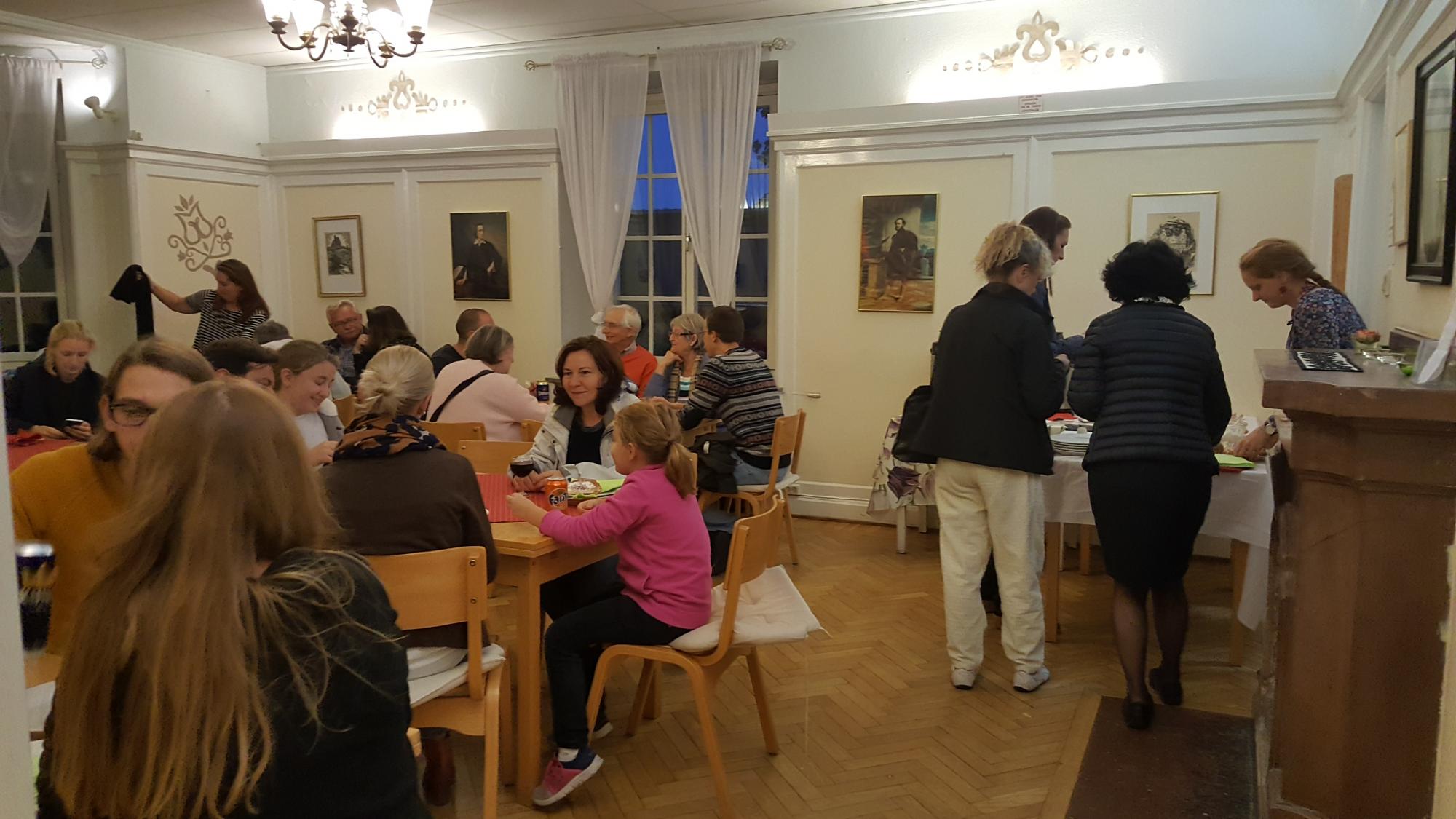 Az est alatt fokhagymás, tejfölös, sajtos, lilahagymás lángost és szilvás süteményt ehettek a résztvevők. Utóbbiról tudni kell, hogy a Stockholmi Magyar Ház szilvafájáról szedtük a szilvát, sok szeretettel! „Hull a szilva a fáról...”