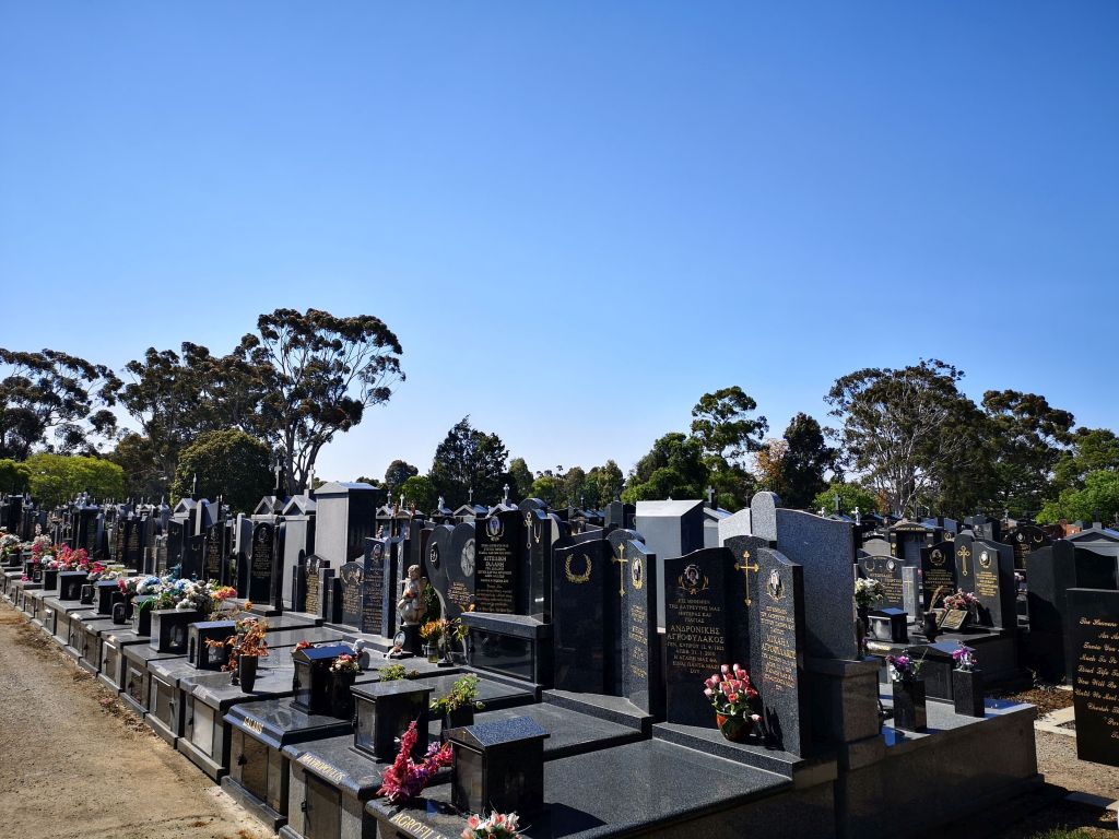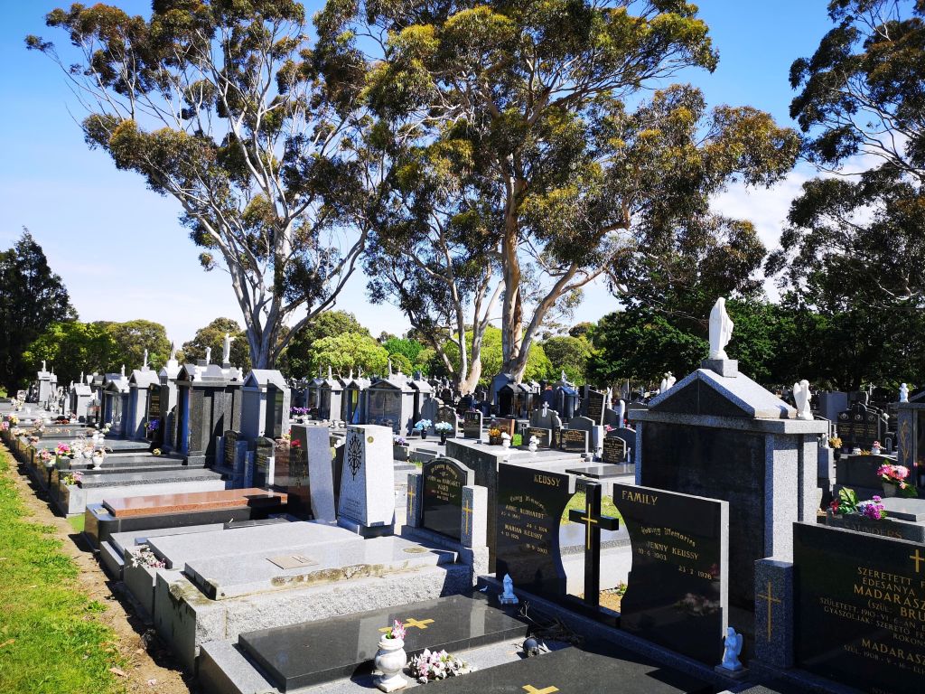 Melbourne – de végső soron egész Ausztrália – multikulturális társadalom, ez elmondható. Megtátszik ez az élet minden színterén. Még a temetőn is. "Csak egyszerű helyet vettünk ebben a temetőben – mutatja férje és édesanyja sírját –, mert ez akkor is szép, ha nem kerül rá gyakran friss virág!"