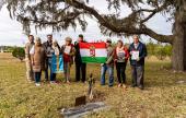 Az esemény különleges volt, hiszen egy kopjafát helyeztek el – sajnos a temetői szabályzatok nem engedik meg, hogy ott maradjon a sírja mellett a kopjafa, ezért a megemlékezés időtartamára lett felállítva – a sírjánál.