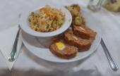 A menün orjaleves szerepelt házi cérnametélttel, amit Stefánia vagdalt követett vegyes vágott savanyúsággal és cikkburgonyával. Az ételsort desszertként profiterole zárta.