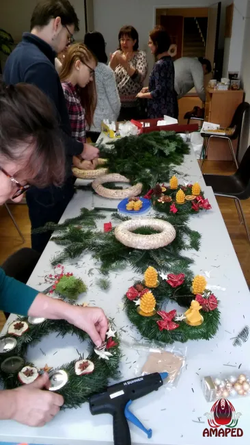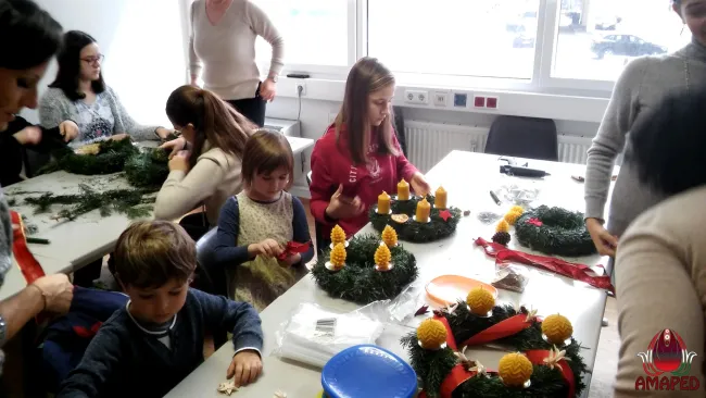 Idén is nagy lelkesedéssel készülünk az AMAPED-ben az adventre. Alig egy hét van hátra advent első vasárnapjáig, idén ugyanis december 3-án kezdődik a négyhetes várakozási időszak, ennek megfelelően elérkezett az adventi koszorúk készítésének ideje is. Az AMAPED diákjainak és családjuknak november 26-án nyílt alkalmuk arra, hogy elkészítsék az ünnepi koszorúkat a családnak.