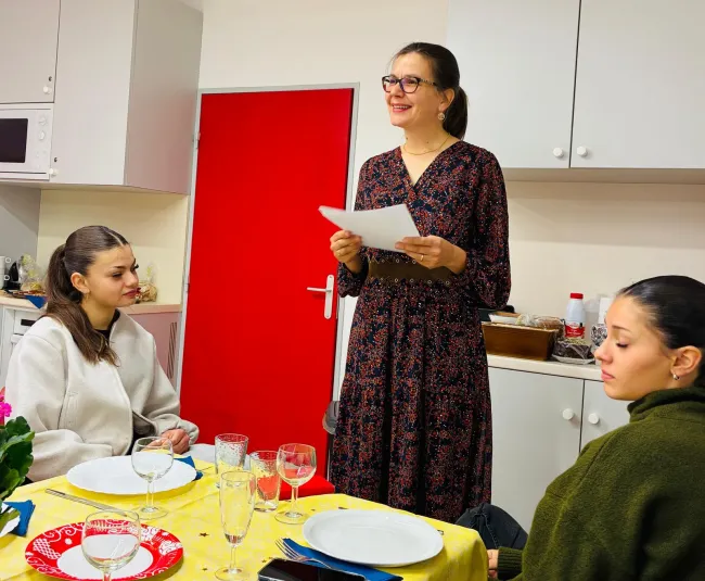 A kibérelt termet ízlésesen feldíszítették, és hosszú, szépen megterített asztallal készültek. Egy másik asztalra kerültek a nyalánkságok az adventi koszorú mellé.