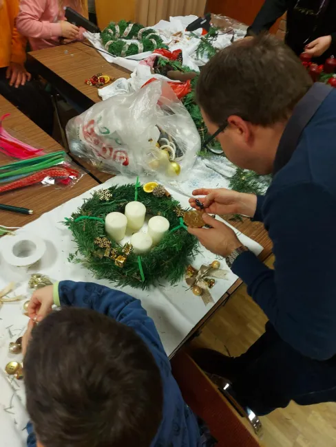 Szeptember végén indítottuk Alkotókörünket Kádár Orsi Kőrösi Csoma Sándor Programos társammal, és azóta 4 alkalmon vagyunk túl, amelyeken készítettünk őszi manós ajtódíszt, Márton napi libát varrtunk, hímeztünk, és adventi koszorút alkottunk.