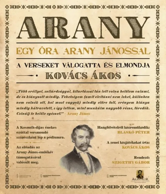 Kovács Ákos, Kossuth-díjas énekes zenei pályafutását röviden szüneteltetve 2017-ben az Arany János-emlékévhez kapcsolódóan versmondó színészként járja a világ magyar közösségeit, ahol nívós előadások keretében ünnepelhetjük egyik legnagyobb magyar költőnket. Október 29-én az ottawai Magyar Ház vendége volt.