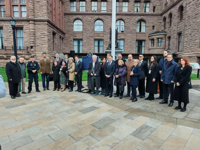 Október 23-án az ontariói törvényhozás épülete előtt a helyi magyarok és barátaik ünnepélyes zászlófelvonással, valamint az Örökséghivatal által elkészített emléktábla leleplezésével emlékeztek meg az 1956-os szabadságharcról.