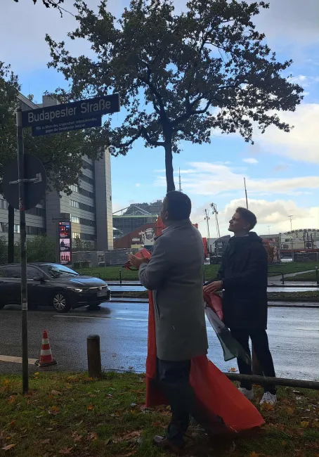 Bemutattuk a tervet Hamburg-Mittében, hiszen a Budapester Straße az ő fennhatóságuk alá tartozik. Először nehéz volt elmagyarázni, hogy ez nem politikai, hanem kulturális indíttatású projekt – egy megemlékezés a szabadság hősei előtt.