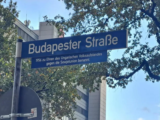 András említette, hogy 1956-ban Hamburg városa szolidaritásból átnevezett egy utcát – az Ernst-Thälmann-Straße-ból lett a Budapester Straße. Ezt addig én sem tudtam, és amikor elmagyarázta, nagyon meglepődtem. Hiszen nap mint nap elsétáltam arra, anélkül, hogy belegondoltam volna, miért viseli ezt a nevet.