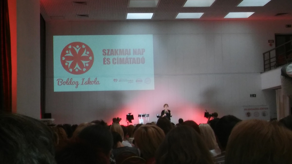 2017. október 5-én vettem részt a Jobb Veled a Világ Alapítvány Boldog Iskola programjának címátadóján, valamint szakmai napján. A rendezvény házigazdája az Alapítvány elnöke, Bagdi Bella volt, előadói és vendégei pedig Prof. Dr. Bagdy Emőke, a Boldogságprogram fővédnöke és a Boldogságóra könyvek társszerzője, Prof. Oláh Attila, a Boldogság Intézet tudományos szaktanácsadója, az ELTE Pozitív Pszichológia Kutatócsoport vezetője, valamint nyolc olyan pedagógus, akik már legalább egy éve tartanak boldogságórákat és akiknek az élménybeszámolóit meghallgathatták a jelenlévők. A programba idén szeptembertől Magyarország mellett további hat ország iskolái (Szlovákia, Románia, Ukrajna, Szerbia, Horvátország, Ausztria) csatlakoztak be.