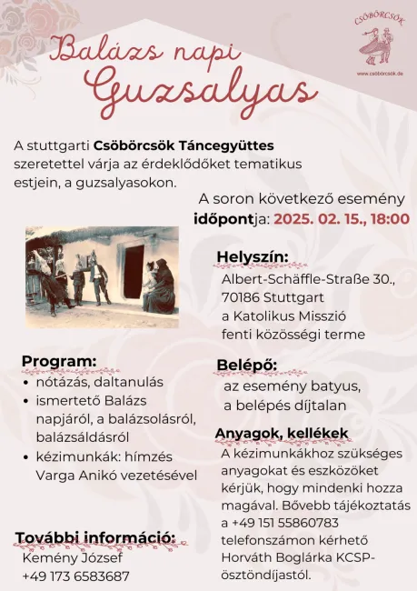 A Csöbörcsök Kultúregyesület 2024. októberében elindította tematikus estjeit, melyek a találkozás, együtt töltött idő, hagyományőrzés és kultúra jegyében szerveződnek. A 2025. februári esemény névadója Balázs napja volt.