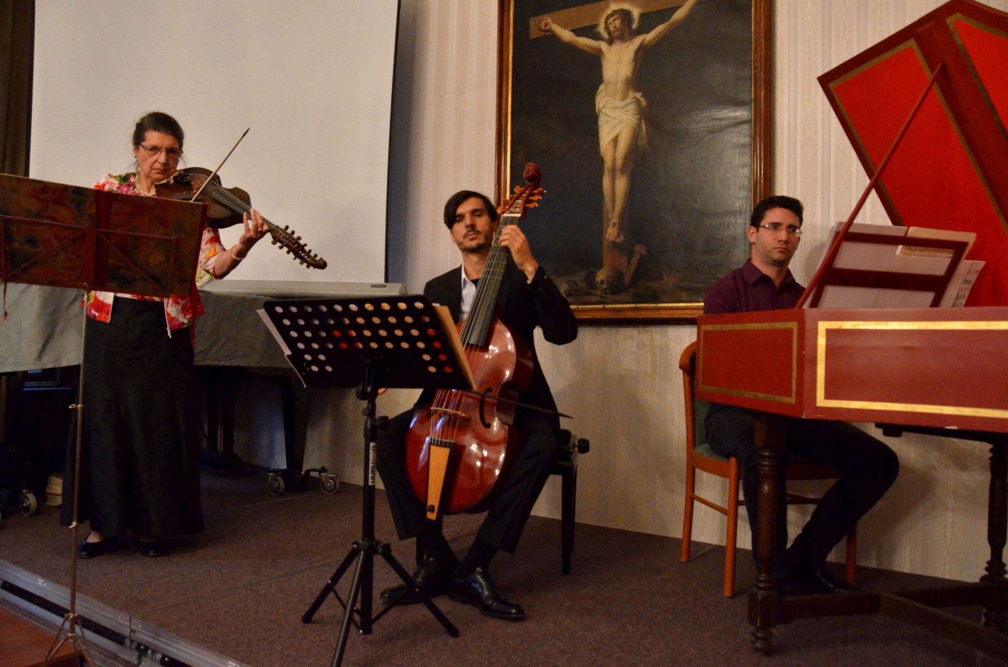 A kerámiák látható szépsége a zene harmóniáira irányította a figyelmet, s ezáltal látás és hallás párbeszédbe lépett egymással az est folyamán. A szakrális művészetek hetét lezáró est így a látható és a láthatatlan párbeszédbe lépésének tere és közege lett, ahol minden pillanat „kilógott az időből.” Ily módon nemcsak a látható szépségek törékenységére nyílt meg a szem, hanem, valójában az a határ vált érzékelhetővé, hallhatóvá, amely elválasztja egymástól az égit és a földit. Törékeny minden pillanat, és törékeny maga az a határ, amelyet sokszor nem merünk megközelíteni, átlépni pedig talán nem is lehet. Ugyanakkor Vig Margit (viola d’amore), Christoph Urbanetz (viola da gamba) és Tegyei Zoltán (csembaló) Telemann, Antoine Forqueray, Attilio Ariosti, Vivaldi, Marin Marais, Diego Ortiz és Maria Vermes műveit játszva épp e leheletfinom határhoz vezették a hallgatóságot. Hogy „az öröklétet ízlelhessük még innen a halálon.”