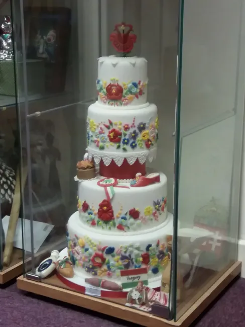 Amikor 2018. szeptember elején a Kőrösi Csoma Sándor Program ösztöndíjasaként megérkeztem állomáshelyemre, az angliai Kingston upon Hullba, a magyar közösség termének egyik vitrinjében megakadt a szemem egy magyar motívumokkal díszített emeletes tortán.