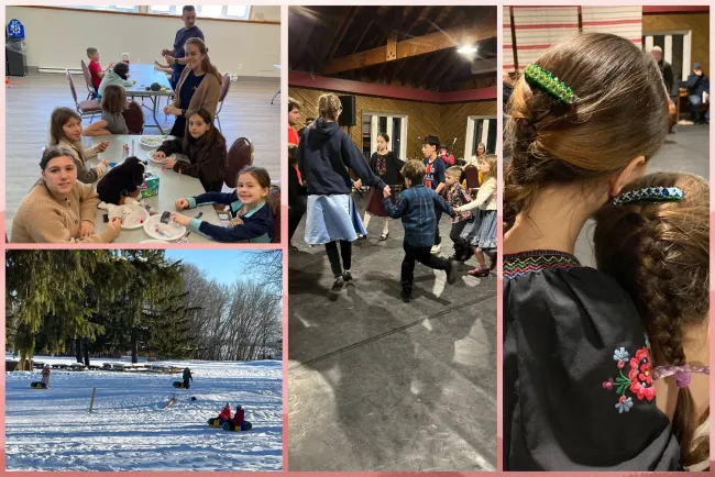 A férjemmel mi kaptuk a megtisztelő feladatot, hogy a gyerekprogramokért feleljünk. A gyerekeknek Rábaközi táncokkal készültünk, valamint kézműves foglalkozással. A tanulás mellett persze a felhőtlen kikapcsolódásé volt a főszerep: a közös szánkózás a friss hóban, az együtt éneklés és a hegedűórák mind-mind közelebb hozták őket a magyar kultúrához. Az esti gyerektáncházakban pedig újabb táncokkal ismerkedhettek meg.