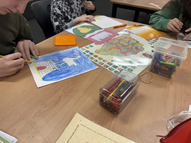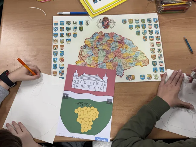 Az órán ezt követően a tanulók a megszerzett információkat vizuális formában dolgozták fel: megrajzolták és kifestették azoknak a magyarországi vármegyéknek a címereit, ahonnan családjuk származik. A feladat egyszerre fejlesztette a kreativitást és erősítette a kulturális kötődést, hiszen a gyerekek személyes jelentéssel bíró szimbólumokon keresztül kapcsolódhattak Magyarországhoz.