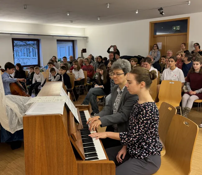 Ezt követően József Atya és Mustos Edit, akik a kölni Magyar Tanoda vezetői örömmel osztották szét a gyerekek között az aktuális suliújságot, mely a 2025 január és decembere közötti időszak emlékeit hordozza.