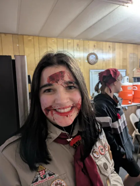 Szombaton a rendszerbe való „beléptetés” zajlott. Kiosztottuk a vörös nyakkendőket – a cserkészet tilos volt, úttörőként voltunk jelen a táborban. Az étkezés jegyrendszerhez kötődött, mindent közösen, központi szabályozás szerint lehetett fogyasztani, egymást elvtársnak szólítottuk, de még a WC-használat és a WC-papír kiosztása is központi irányítás alá került. A nap fókuszában az 5 éves terv teljesítése állt, a besúgórendszert pedig egy élőszereplős Among Us-játék formájában ismerhettük meg. Az estét egy csernobili hangulatú horrorerdő zárta, majd egy takarodó utáni titkos gyűlésen elindult a szóbeszéd: egyre többen disszidálnak, Amerikába szöknek a jobb élet reményében. Itt derült ki az is, hogy a Hontalan Sas őrs sikeresen elhagyta az országot, Németországon keresztül Amerikába jutott, magával víve a Magyar Cserkész Szövetség alapító leveleit, és megalapította a Külföldi Magyar Cserkészetet – biztosítva, hogy a magyar cserkészet a diktatúrán túl is tovább éljen.