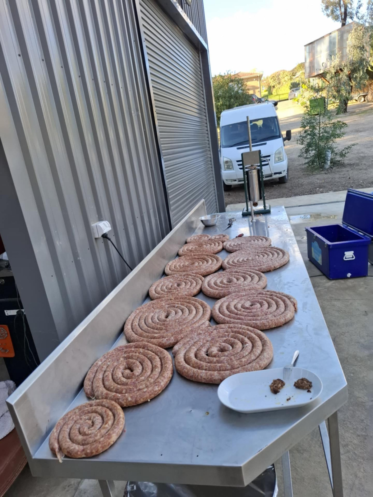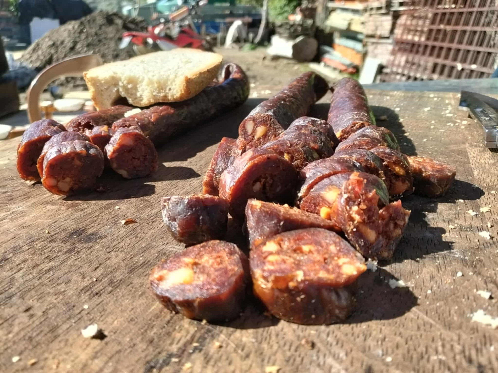 A házi kemence parazsa alatt a friss, illatos kenyér kezdett sülni, míg a húsból pörkölt és sült finomságok készültek – mindezt magyar zene kíséretében, ami különös, nosztalgikus hangulatot kölcsönzött a délutánnak. Közben a kolbásztöltésre is sor került: a fűszerek illata és a nevetés keveredett, ahogy mindenki próbálta a legszebb, legkarikásabb kolbászt formázni.