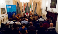 Telt ház volt Magyarország Dublini Nagykövetségének termében azon az irodalmi esten és beszélgetésen, amelynek a Hungarian Culture Days/Culture Bridge meghívására Dublinba érkező Szőcs Géza volt a vendége.