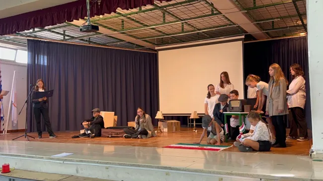 A rendezvény központi eleme egy különleges, a padláson játszódó színdarab volt, amelyben a nagypapa régi levele nyomán elevenedtek meg az 1956-os események. A fiatal szereplők életkoruk ellenére is rendkívüli hitelességgel, átéléssel és mély tisztelettel adták vissza a kor hangulatát, a hősök bátorságát és a szabadságvágy örök üzenetét. A nézőtéren érezhető volt a történelem súlya és a közösség összetartó ereje — a gyerekek játékában egyszerre volt jelen a meghatottság, a tisztelet és a remény.
