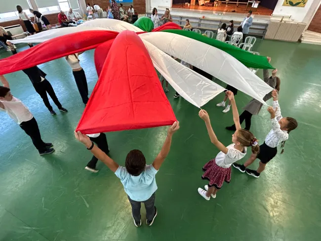 A megemlékezést a Himnusz és a Szózat keretezte, a gyerekek pedig szóló énekkel és tánccal színesítették az ünnepi műsort. Külön figyelmességgel készült a szervezőcsapat a ciprusi szülők számára is: egy rövid, görög nyelvű történelmi összefoglaló hangzott el, amely segített a helyi közösségnek is megérteni az 1956-os magyar események jelentőségét.