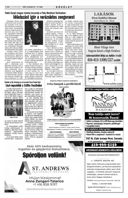 2024. november 27-én este különleges zenei élmény várja a klasszikus zene szerelmeseit a Flato Markham Színházban. Teleki Gergő, nemzetközileg elismert magyar zongoraművész ad koncertet, aki a zenei világban egyedülálló tehetségével és érzékenységével varázsolja el közönségét.