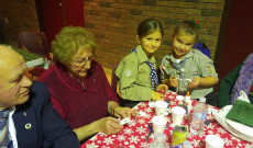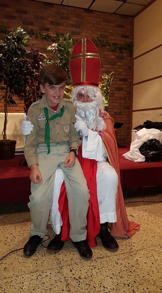 Az est folyamán különleges vendég érkezett hozzánk a Szent István Római Katolikus Plébánia nagytermébe. Nem tudom biztosra mondani, hogy mi volt az oka annak, hogy ilyen szerencsések voltunk… Vagy a frissen sült lángos illata miatt, vagy a gyerekek karácsonyi dalai miatt, de a Mikulás, még hatodika előtt, külön kitérőt tett Hamiltonba, hogy részt vegyen az ünnepségen, kicsik és nagyok legnagyobb örömére. Mindenkinek hozott egy-egy csomag édességet, bár a Krampusz rásuhintott a virgáccsal legtöbbünkre, emlékeztetve arra, hogy a Mikulás feljegyezte azért rosszaságainkat is.