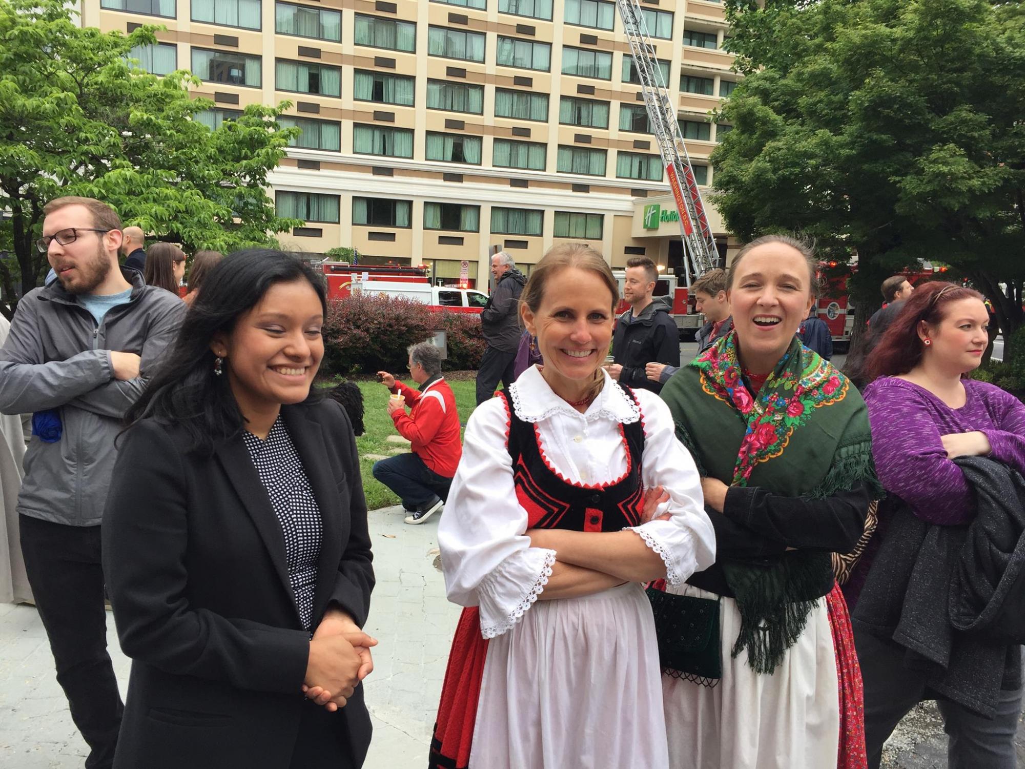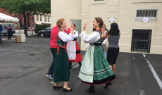 Az EU-s nagykövetségek nyílt napja nálunk részben az épület udvarában zajlott, a Pesti srác szobor körül. Itt magyar kutyafajtákat ismerhettek meg az erre járók. Vizsla, puli, sőt kuvasz is képviseltette magát. A magyar gulyást, és a speciális hun-dogot (csabai jellegű kolbászal) is itt lehetett megkóstolni. A pogácsákat megint jószívvel adták (a washingtoni pogácsának nagy híre van), és egy kvízt is ki lehetett tölteni Magyarországról. Az időjárással szerencsénk volt, ugyan kicsi hűvös volt, de az előrejelzések ellenére nem esett az eső. Az épületben a földszinti szalonokat lehetett megcsodálni, valamint egy bár része is van az épületnek, ahol borkóstoló folyt. Kulturális programokkal is készültünk, Fábián-Kovács Szilvia néptáncot tanított, Donald Stevens prímás a fiatal tanítványaival hegedült, én pedig erdélyi népdalokat adtam elő. Ez a rendezvény elsősorban az utca emberének lett szervezve,sok járókelővel beszélgettem és jó volt hallani, mikor páran még a pár évvel ezelőtti Folklife festival magyar rendezvényére jól emlékeztek, és szép élményként szívükben őrzik. Többen ezért is jöttek el a nagykövetségünkre. Egy kellemes délutánt töltöttünk együtt, és az EU Open House egyik legbarátságosabb helyszíne voltunk.