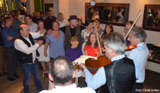A gyermektáncház után a felnőttek tanulhattak néhány alaplépést széki, bökönyi és bonchidai táncokból Bilicki Tímea, Bilicki Viktor és Kibili Márton tánctanárok segítségével, miközben a Pendely Együttes muzsikált. Az együttes rendszeres vendége a müncheni táncházaknak, különlegessége, hogy a néptáncos lányok pendelyt viselnek, megtisztelve ezzel muzsikájukat, jelenlétüket. Ezen a szombaton egy jeles pillanatnak is részesei lehettünk: az együttes idén ünnepli 35 éves fennállását. Méltán járt a zenészeknek a pendely alakú torta és a köszöntő ének. Előadásukban nem csak Münchenben, hanem egész Nyugat-Európában több generáció ismerhette, szerethette meg a magyar népzenét. Muzsikájuk sokak szívét-lelkét tölti meg melegséggel.