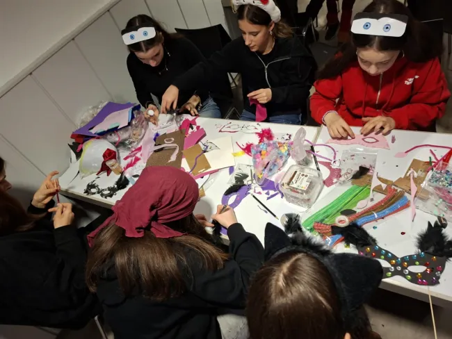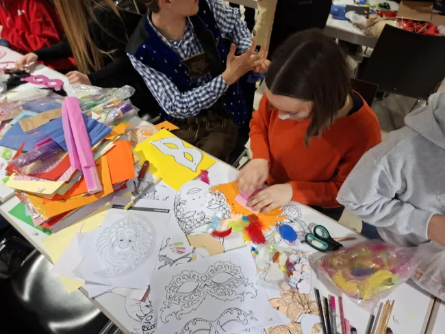 A zászlófelvonás után kezdődtek a csapatfoglalkozások, majd több állomásból álló tallérgyűjtés indult. KCSP-s kolléganőmmel, Kádár Orsival, mi is készültünk a gyerekeknek egy kis kézműves állomással. Orsinál busó maszkokat tudtak készíteni a vállalkozó szellemű cserkészek, nálam pedig színes álarcokat.