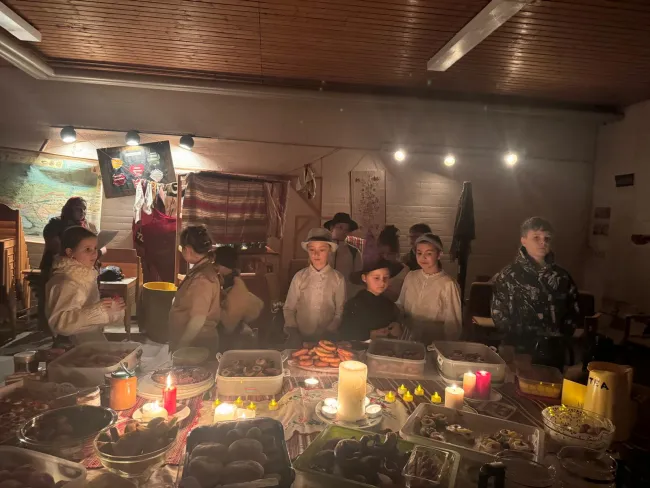 A vezetők egy farsangi “akadálypályát” készítettek a cserkészeknek. Mialatt ez elkészült addig a cserkészeknek a csapatparancsnokunk, Jablonkay Lydia mesélt a farsanghoz kapcsolódó népszokásokról, úgy mint a télűzés, kiszebáb égetés vagy a busójárás.