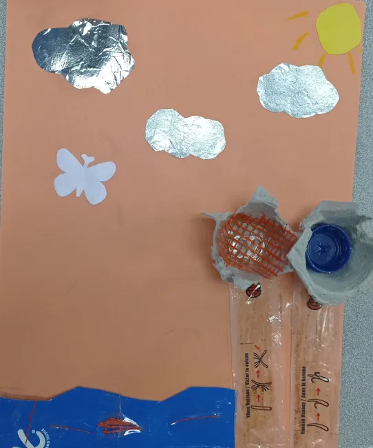 A tanmenet, az óravázlatok hétről hétre való elkészítése nem egyszerű feladat, hisz az osztályokban van olyan gyermek, aki egyáltalán nem ért magyarul, míg van aki szinte akcentus nélkül. Van aki még nem tud írni, olvasni, de vannak 12-14 évesek is. Minden alkalommal egy-egy témát járunk körül, ehhez kapcsolódik az aktuális olvasmány, a különböző nehézségű feladatlapok és a kézműves foglalkozás is. Ezek a témakörök jellemzően a magyar jeles napokhoz, az ünnepi és népszokásokhoz kötődnek. De vannak olyan globális figyelmet igénylő események, melyek szintén terítékre kerülnek a magyar iskolában is, így 2024. április 20-án a közelgő Föld napja köré terveztük az órák menetét. Beszélgettünk és feladatokat oldottunk meg a klímaváltozásról, a különböző energiaforrásokról, az energiatakarékosságról és a szelektív hulladékgyűjtésről is. A gyerekek a kézműves foglalkozás során pedig a saját tízóraijukból, illetve a nap folyamán keletkezett egyéb hulladékokból készítettek izgalmas képeket.