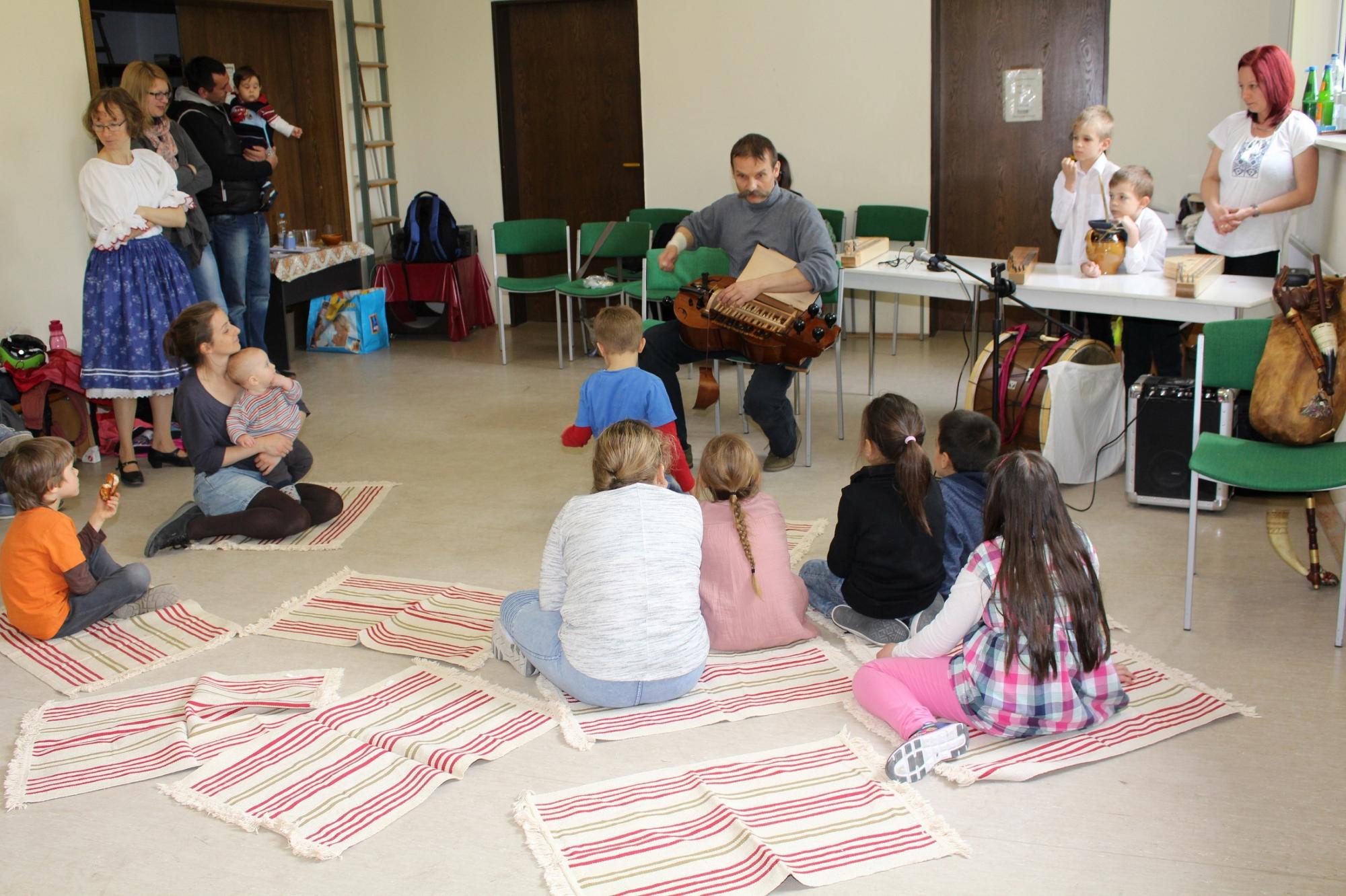 A program első részében nagyon érdekes volt Karakas Zoltán barátom, a helyi Kőrösi Csoma Sándor programos által tartott furulyaoktatáson részt venni. Sok tapasztalatot gyűjtöttem, amit saját foglalkozásaimon kamatoztathatok. Ezt követte a Népi játszóház és hangszerbemutató Szenti Csilla és Mészáros Petra táncosok vezetésével. Ugrós táncházzal kezdtünk, amiben Karakas Zoltán dudált, én pedig tekerőztem. A népi játékokat Zoltán furulyázta, s én citeráztam. Mikor kissé elfáradtak, táncosaink tanítványaim segítségével bemutattam hangszereimet. Citeráztunk, doromboltunk, majd kiosztottam egyszerű népi hangszereimet: a rece-ficét, csörgőket, csattogót…, így bevonva kis közönségünket a muzsikálásba. Később előkerült a tekerő, s elmondtam annak meséjét is. Rövid szünet után előadtuk a „Vörös Kisdobos” című 48-as történetemet, ahol az egész Vörös család lelkesen szerepelt, melyen jókat derültünk időnként. Sikeresen verbuváltuk seregünket közönségünkből és a történet hősét tánccal ünnepeltük. Ezután előkerült a koboz, mellyel Zoltán furulyáját kísértem. Döngött a dob, és a kitartóbbak a felnőttekkel kiegészülve moldvai muzsikára ropták a táncot. Igazán tartalmas napot hagytunk magunk után, s bízvást mondhatom, hogy senkit se kellett este elringatni. Másnap aztán a hideg, eső és szél ellenére csodálatos városnéző programban volt részünk Dr. Csikós János, az Egyesület elnökének jóvoltából, amit ez úton is köszönünk a szíves vendéglátással egyetemben.