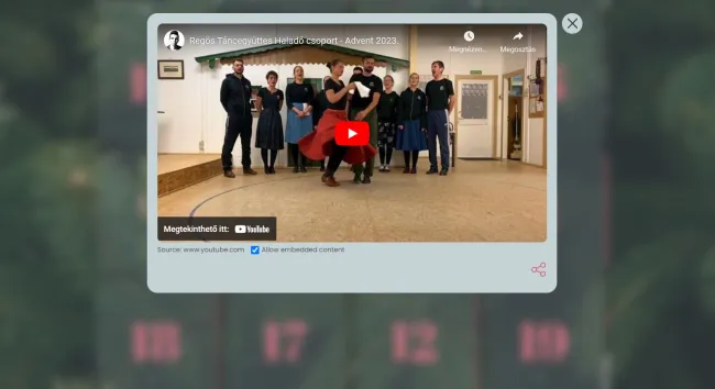 Online adventi naptár létrejöttét kezdeményeztem a németországi magyar szervezetek között. Németországi magyar szervezetek kalendáriuma Adventi kalendárium egyik ablaka Adventi kalendárium egyik ablaka Adventi kalendárium egyik ablaka