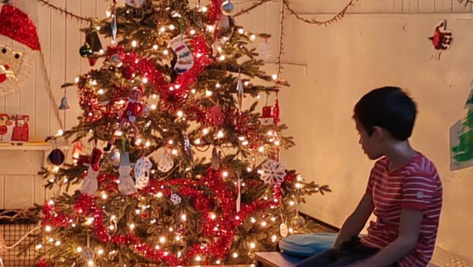 Következő alkalommal, az adventi időszakhoz közeledve, már a Télapó érkezésére hangolódtunk. Beszélgettünk, arról, hogy kinél mi a szokás december 6-án, és hogy mit szeretnének kapni az idén a Télapótól. Közösen gyakoroltuk a dalokat, amelyeket december 3-án a Télapónak is elénekelnek majd a gyerekek. Utána karácsonyi képeslapokat készítettünk a család számára. A képeslapra felkerült Rudolf, a piros orrú rénszarvas, majd hópelyhekkel díszítettük az alkotást. A képeslap belsejébe egy karácsonyi jókívánság vagy egy kedves rajz került.