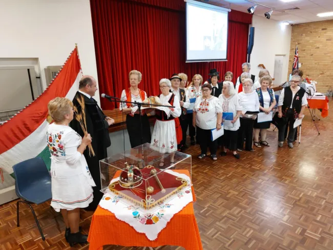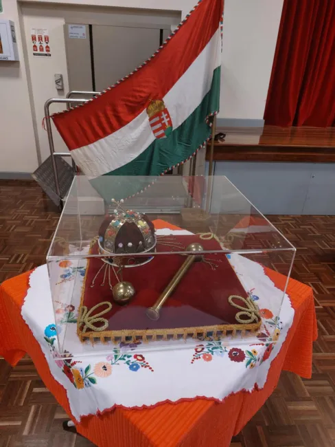 A klub tagjai közül többen gyönyörű, hagyományos magyar viseletben érkeztek, ami még ünnepélyesebbé tette az alkalmat. Az egyik lelkes tag különleges meglepetéssel is készült: elkészítette a magyar Szent Korona másolatát, amelyet mindenki megcsodálhatott.