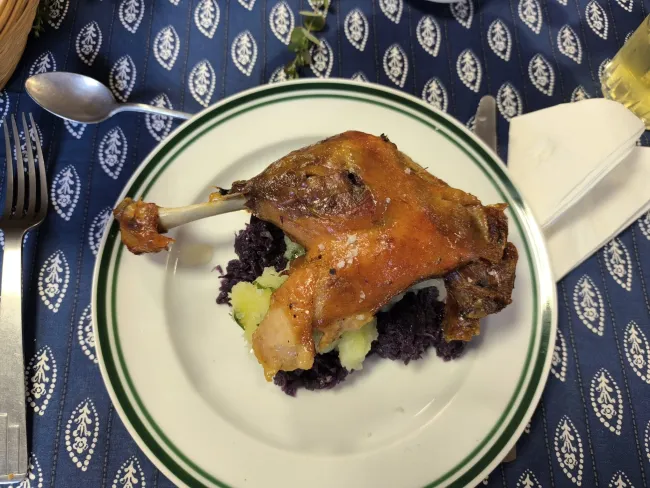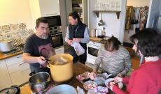 A főszakács Áron volt. Igazi, erdélyi ünnepi ebéd készült, a kötelező húslevessel grízgaluskával, majd rucasülttel, vöröskáposztával és petrezselymes krumplival. A citromszeletet Anikó remekelte.