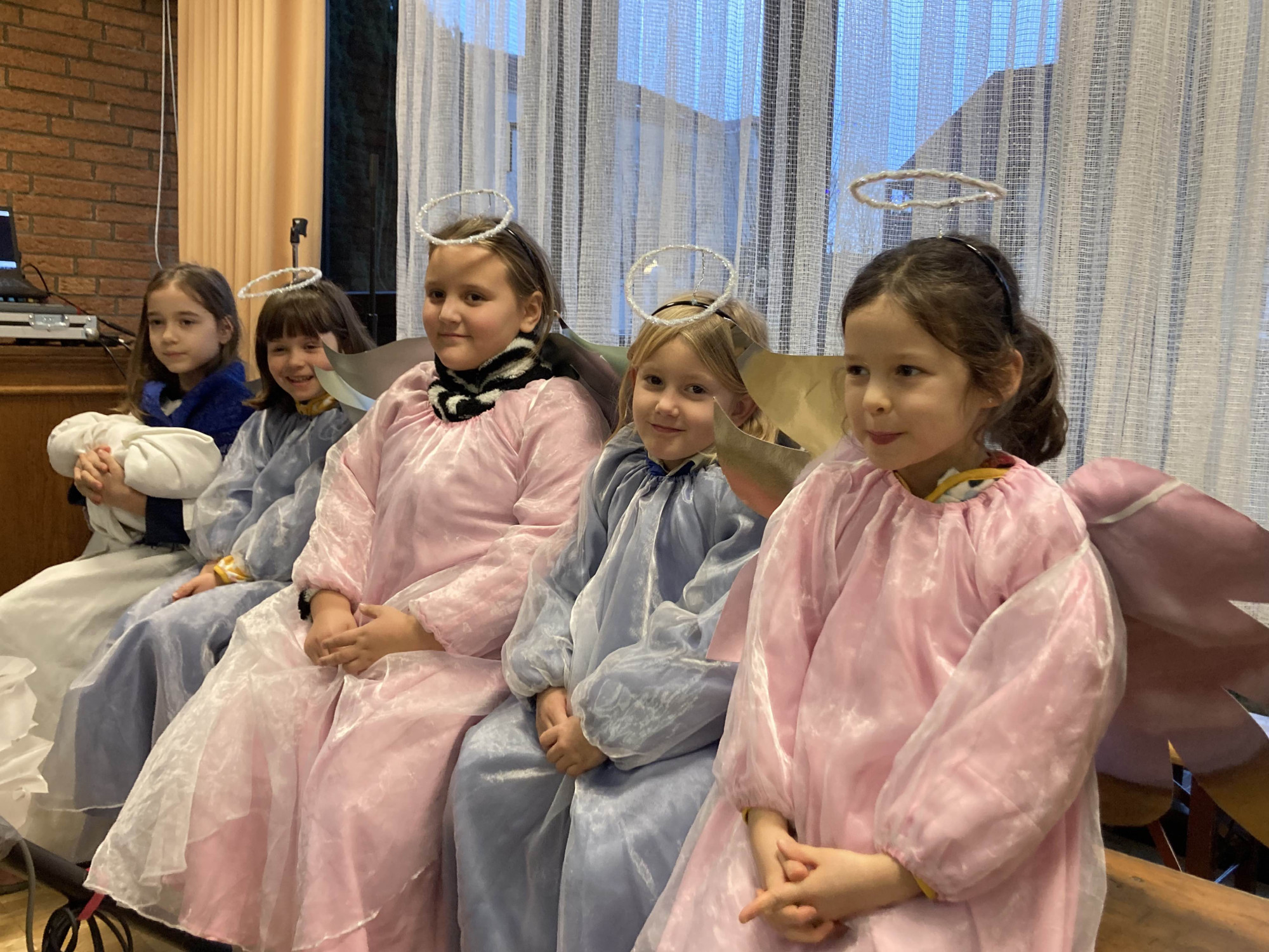 A műsorszámok között az ünneplő közönség a gyerekekkel közösen énekelte a jól ismert karácsonyi dalokat, ami igazán családias hangulatot keltett a teremben. Az ünnepség végén minden fellépő összegyűlt a színpadon, és József atya egy-egy kis csomaggal, tele gyümölccsel és édességgel köszönte meg nekik a sokszínű ünnepváró előadást.