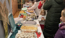 Vasárnap a szentmise előtt is összegyűlt néhány szülő és fiatal, akik forralt borral, meleg kakaóval, grillezett kolbásszal készültek az egybegyűlteknek. Eközben a szeretetvendégségre előkészített asztal is megtelt az otthonról hozott finomságokkal. Az én egyik személyes kedvencem, a kókuszkocka, tízesre vizsgázott.