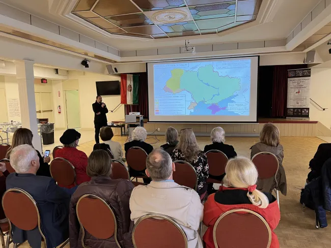 A virágvasárnapi szentmisét követően különleges eseményre került sor Torontóban: Dr. Seremet Sándor történész, kutató tartott nagy érdeklődéssel kísért előadást a kárpátaljai térség aktuális helyzetéről és a magyar közösséget érintő társadalmi, politikai kihívásokról.