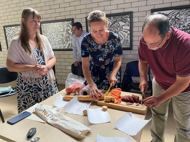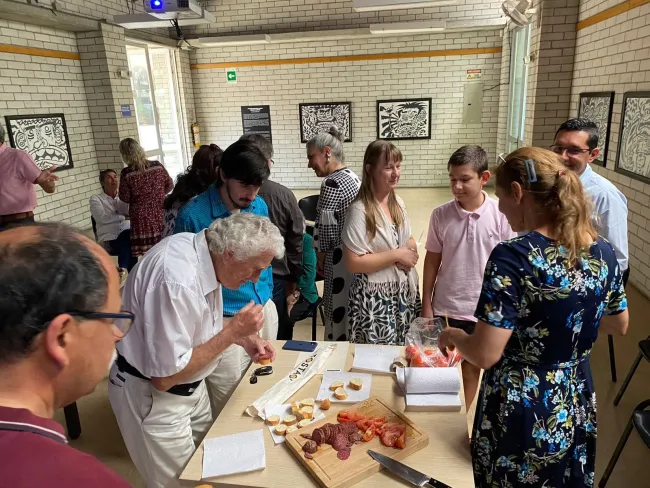 Magyar nap Medellínben. A délután szervezőjével, Hofferek-Tar Jutkával Megkóstoltuk a téliszalámit is. A kóstolót táncház követte. Mindenki nagyon jól érezte magát.