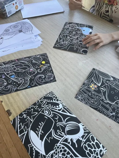Azok a gyerekek, akik inkább kézműveskedtek volna, a kreatív sarokban találták meg a számukra legizgalmasabb tevékenységet: gyurmáztak, színeztek, vagy a népszerű kaparós képek segítségével alkottak szebbnél szebb műveket.