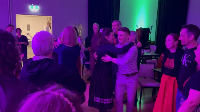 Így már fizikailag és érzelmileg feltöltődve vághattunk neki a táncháznak. Táncoltunk többek közt felcsíki polgári táncokat, magyarpalatkait, kalotaszegit és szatmárit is. Rami a kalotaszegi alatt, bájos hangjával varázsolta el az egybegyűlteket a színpadon.
