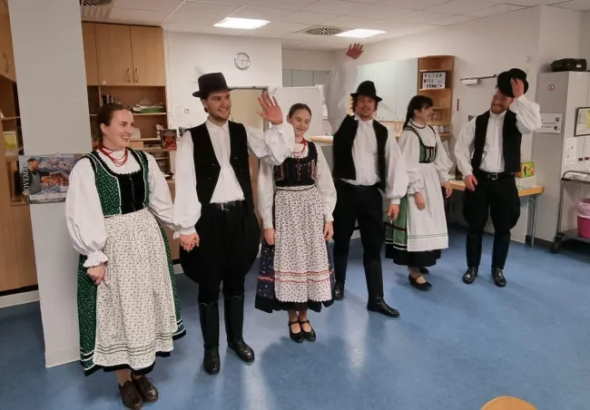 A program csúcspontjaként – a vendégek legnagyobb meglepetésére – megérkeztek a Csöbörcsök táncosai, akik magyar viseletben adtak elő látványos néptáncprodukciót.
