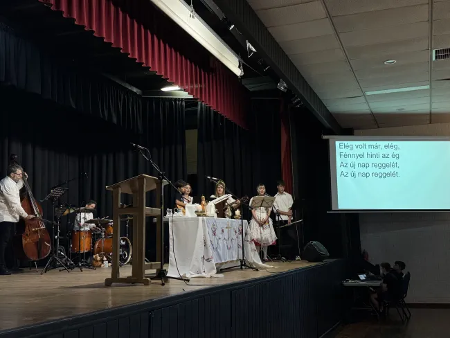 A mise után közös ebéd következett, amely igazi közösségi élménnyé vált. A kínálat rendkívül gazdag volt: a töltött káposztától a lángoson át egészen a dobos tortáig minden finomság megtalálható volt, így mindenki kedvére válogathatott a hagyományos magyar ízek közül. A délután folyamán további különböző programok várták a résztvevőket. A Fonó Táncegyüttes műsora nagy sikert aratott, és öröm volt látni, hogy a magyar néptánc ilyen távol az anyaországtól is élő és értékes része a közösségi életnek. A gyerekeket külön programok, játékok és kézműves foglalkozások szórakoztatták, így valóban minden korosztály megtalálhatta a számára kedves elfoglaltságot.