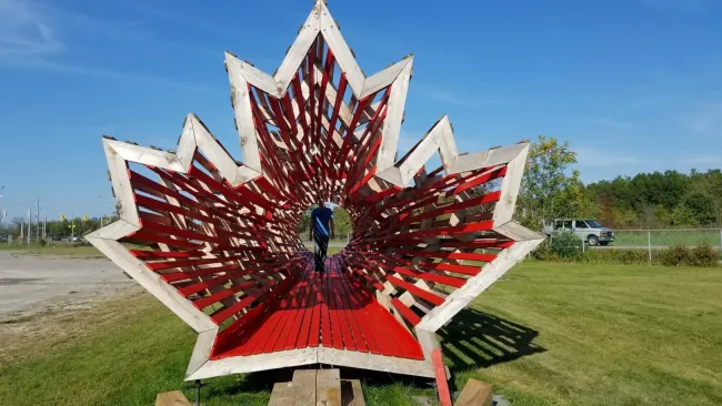 Évente millióan keresik fel a Niagara vízesést, hogy gyönyörködjenek a páratlan látványban. A vízesést Niagara Falls városa öleli körül, amelyet a Niagara folyó választ el egymástól. Nemcsak a várost szeli ketté a folyó, de országhatárt is jelöl Kanada és az Amerikai Egyesült Államok között. A juharszirup országában, a Niagara vidékén számos magyar közösség él. Nagy kulturális élet van a wellandi Magyar házban, de a vízeséstől pár kilométerre a Niagara Falls-i Árpád Hallban is számos program őrzi és erősíti a helyiek magyar identitását. Utóbbi intézmény udvarán kapott helyet a Hello Wood fainstallációja. A műalkotás időutazásra hívja az érdeklődőt: a bejárata a forradalmi zászlótól indul és a kanadai juharlevél szimbólumával végződik.