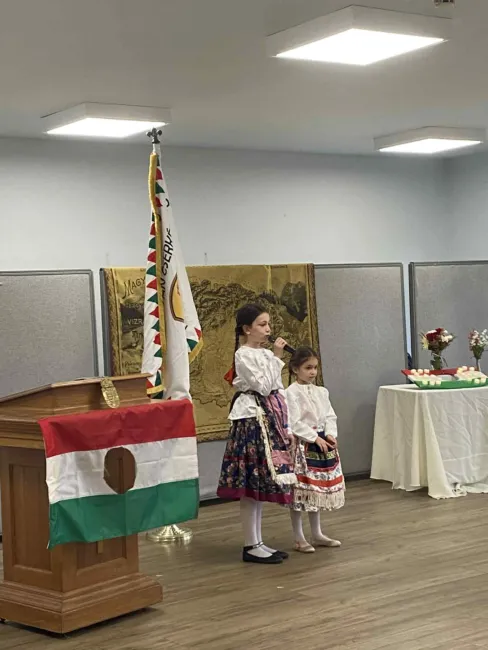 Ez után ünneplőbe öltözött a közösség: kezdetét vette az 1956-os forradalom és szabadságharc megemlékezése. A cserkészek behozták a zászlókat, majd a megnyitó és köszöntő beszédek után a magyar iskolások és cserkészek versekkel és dalokkal tisztelegtek a hősök előtt – megható pillanatok voltak ezek mindannyiunk számára. A műsort a néptáncosok fergeteges moldvai és gyimesi táncai követték, majd Sziki Károly színművész előadása varázsolta el a közönséget. Az ünnepséget magyar delegáció jelenléte és koszorúzás zárta, majd a szeretetvendégség idején mindenki jókedvű beszélgetések mellett oszthatta meg gondolatait és emlékeit.