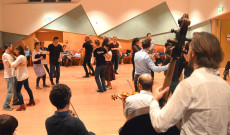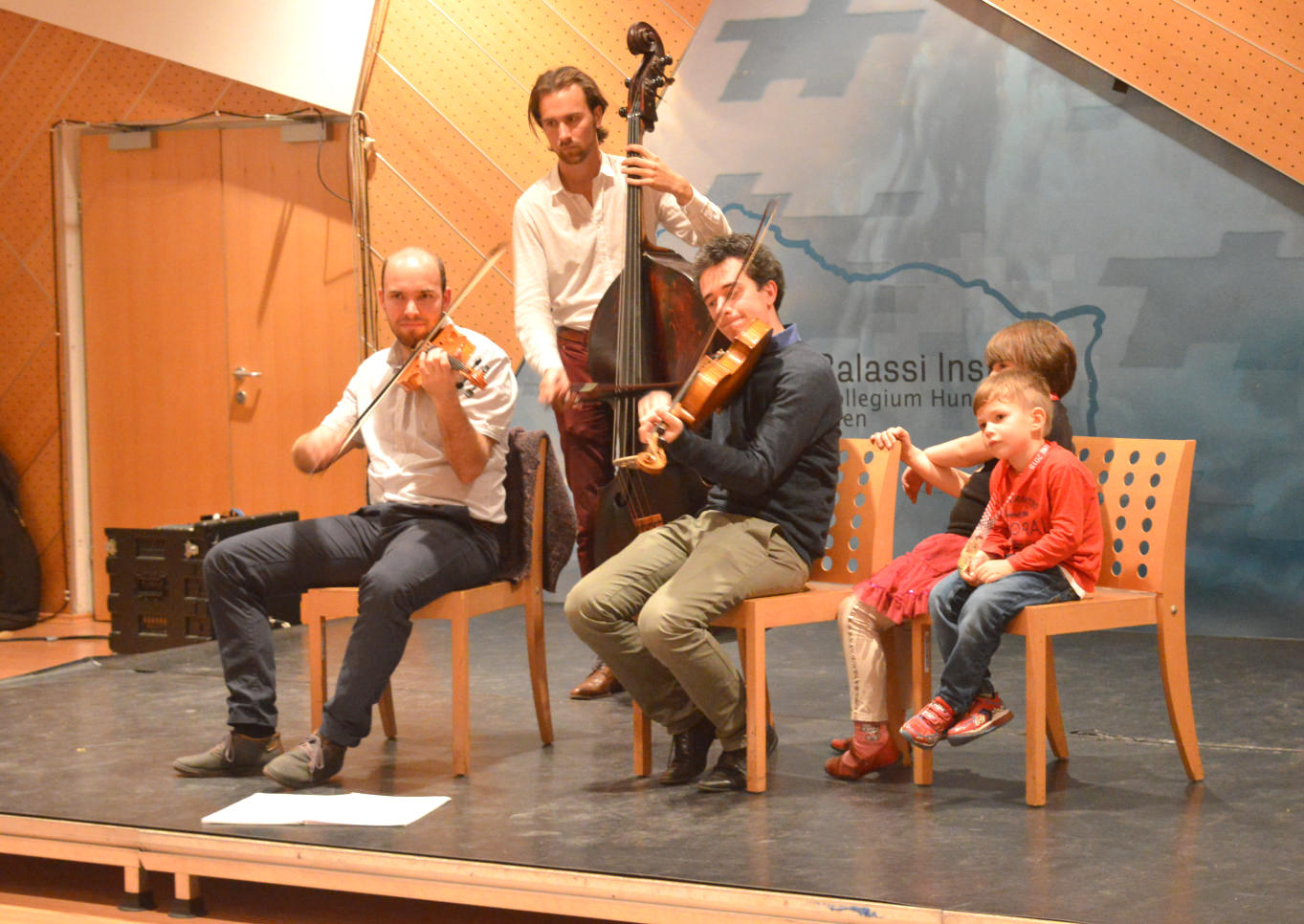 Pénteken délután öt órára népes társaság gyűlt össze a Collegium Hungaricumban. Gyermekek és felnőttek várták izgatottan hogy megszólaljon a zene, és végre táncra perdülhessenek. A Sárarany zenekar nem is váratta sokáig a lelkes jelenlévőket, így néhány perccel öt óra után kezdetét vette a gyermek táncház. A zenekar húzta a talpalávalót, Tőkés Edit és Pável Hunor pedig mosolyogva, és türelmesen tanította a lépéseket a fáradhatatlan gyermekeknek. Jó volt hallani a résztvevők felszabadult nevetését.